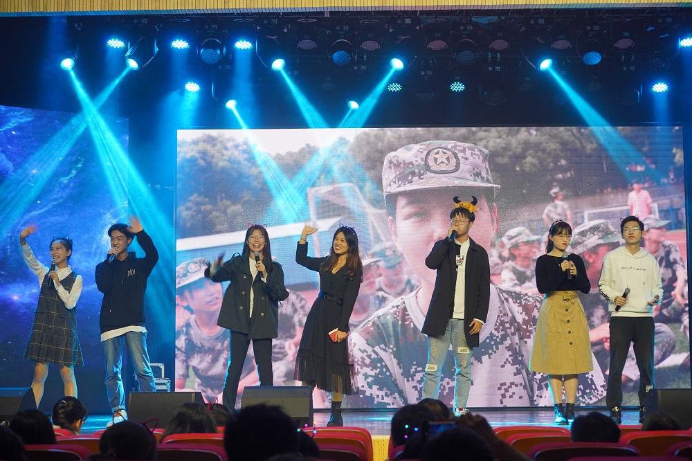 2019级本科新生、MPA、研究生及迎新团队成员、军训教官共同观看晚会。