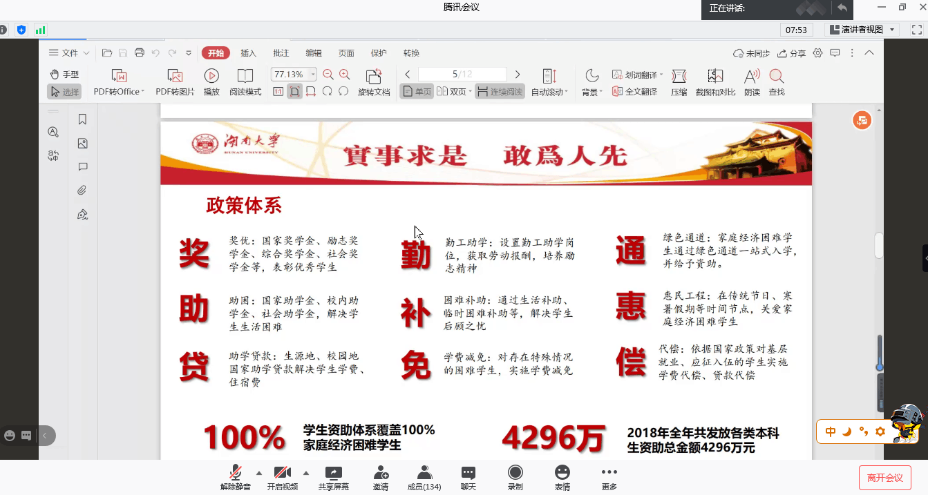 会议伊始,闫老师就资助工作开展的指导思想、工作目标以及工作路径做了简单介绍,让大家对于国家的“四位一体”发展型资助体系有了一个简单了解,随后指出了国家、学校对于学生资助工作的重视程度。接着闫振振老师又为大家详细介绍了由“奖、助、贷、勤、补、免、通、惠、偿”九项资助政策构成的 日本adultvideo