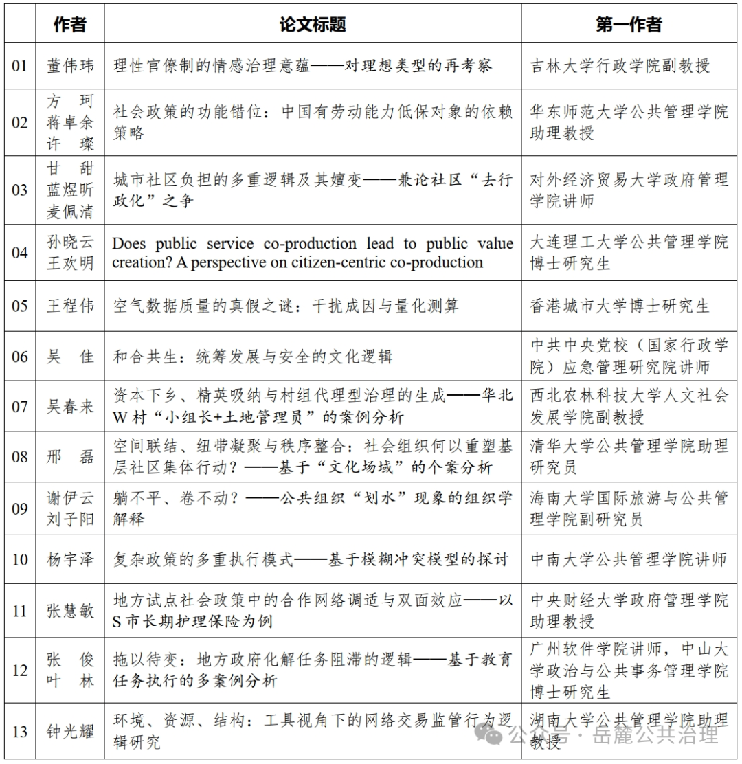 经过前期征稿,通过各种渠道来稿共计117篇,经过编辑部审议,拟录用13篇论文参会,未入选论文不再另行通知。需要特别说明的是,是否入选工作坊主要考量的是论文选题、可塑性和主办方承办能力,并非对论文高下的评价。欢迎广大青年学者继续关注支持《岳麓公共治理》杂志。