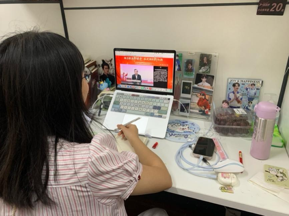 2024年9月4日下午16:00,在行政管理研究党支部的组织支部成员在线观看2024年高校党组织示范微党课(第二阶段)第一期“坚持教育科技人才‘三位一体’,奋力谱写中国式现代化宏伟篇章”。