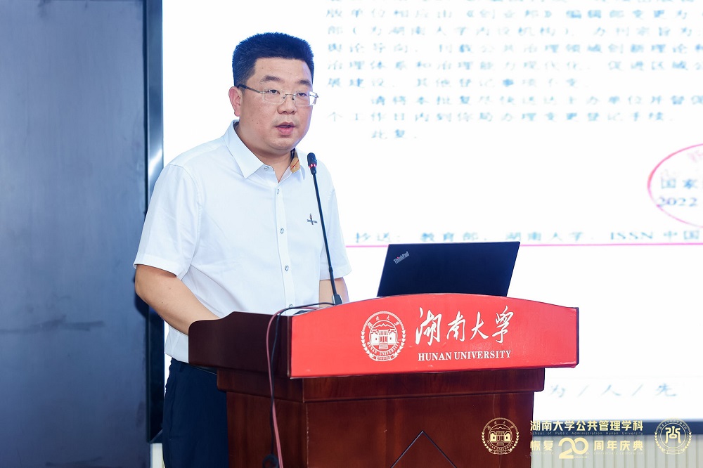 编辑部主任阳义南教授从办刊进展、编辑团队、栏目设置及审稿流程等方面对期刊情况进行介绍。阳义南表示,《岳麓公共治理》的成功创办来之不易,编辑团队将始终秉持“服务公共管理学界,服务学院学科建设”的办刊宗旨,打造高水平、高质量的期刊平台,助力公共管理学科建设,并期望学界同仁持续关注和支持期刊建设。